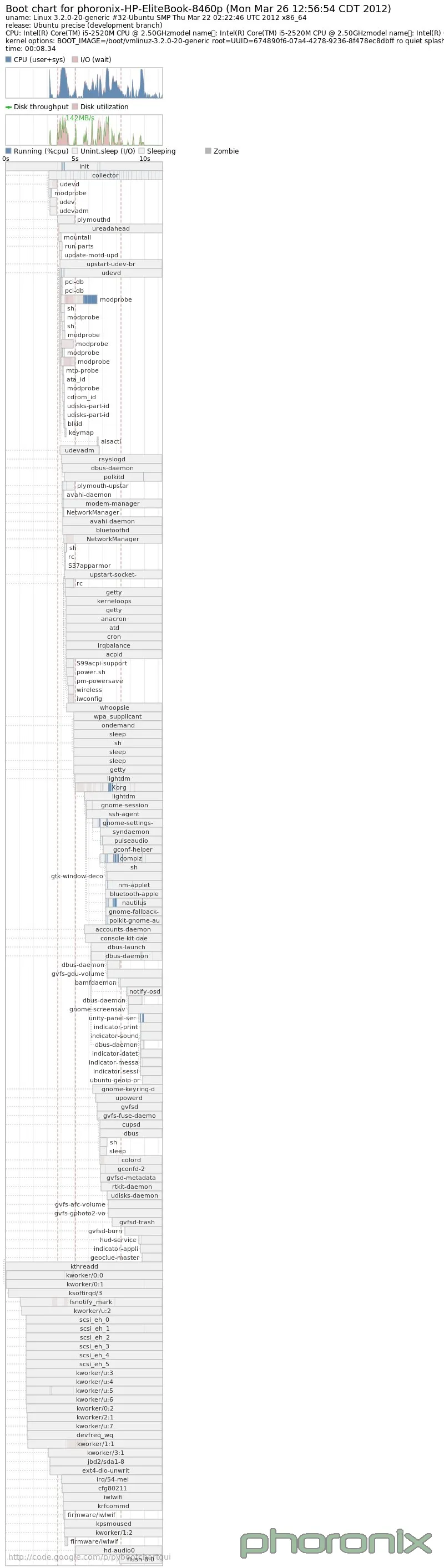 Ab dem Bootloader ist es nicht mehr phaenomenal schlecht sondern nur mehr durchschnittlich schlecht -- dank SSD. Bin schon gespannt, ob sich mit einem moderneren Initnachfolger wie systemd daran dann etwas aendert.